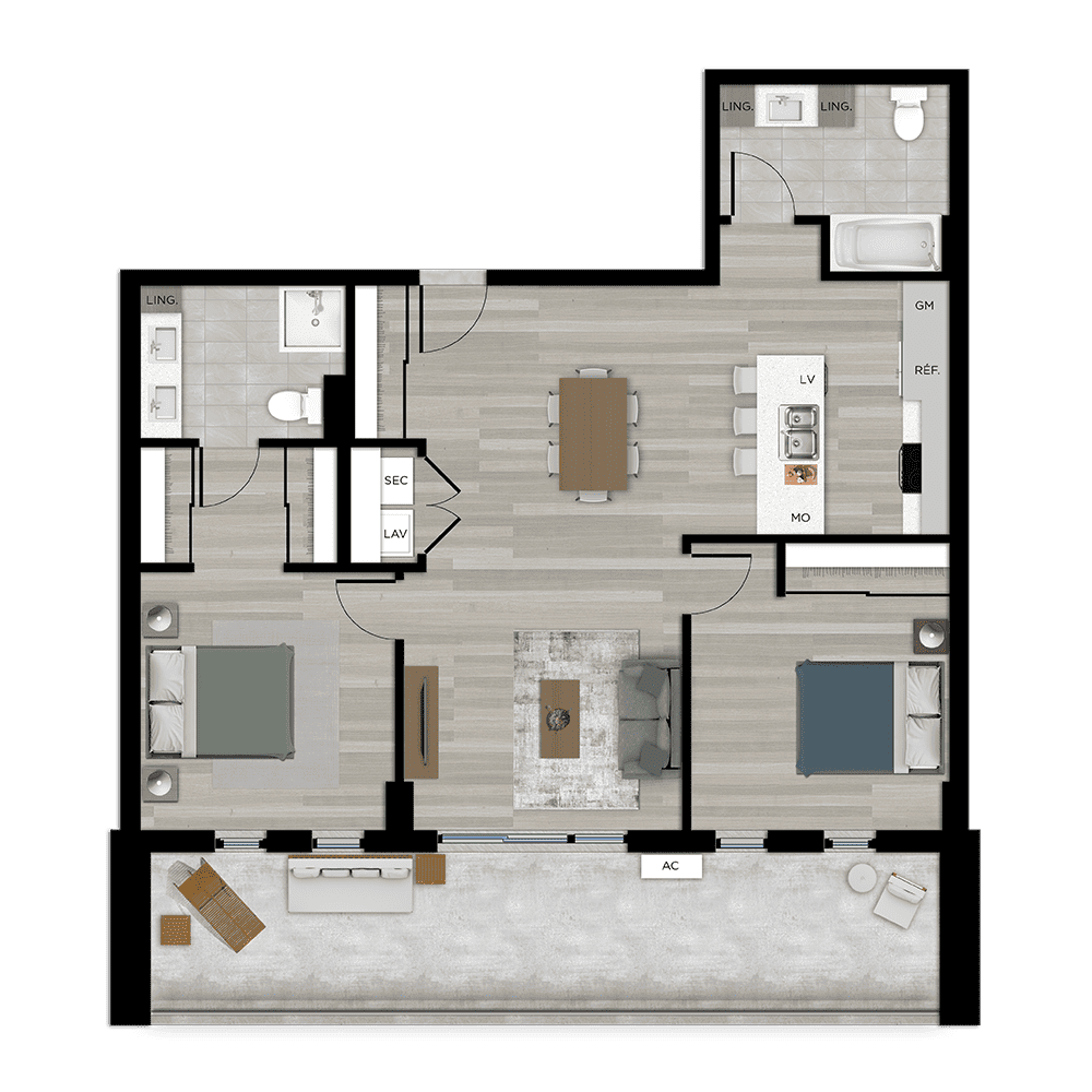 A-Type 407 SIMILAR APARTMENT(S) No apartment available2 bedroom(s)2 bathroom(s)AREA: 1046 ft2BALCONY AREA: 234 ft2TOTAL AREA:1280 ft2 PRENDRE RENDEZ-VOUS (873) 355-6968 content DOWNLOAD IN PDF FORMATThis type of apartment is available in the following finishes: back to the floor selectorTHIS TYPE OF APARTMENT INTERESTS YOU? INFORM OUR TEAM RIGHT AWAY.